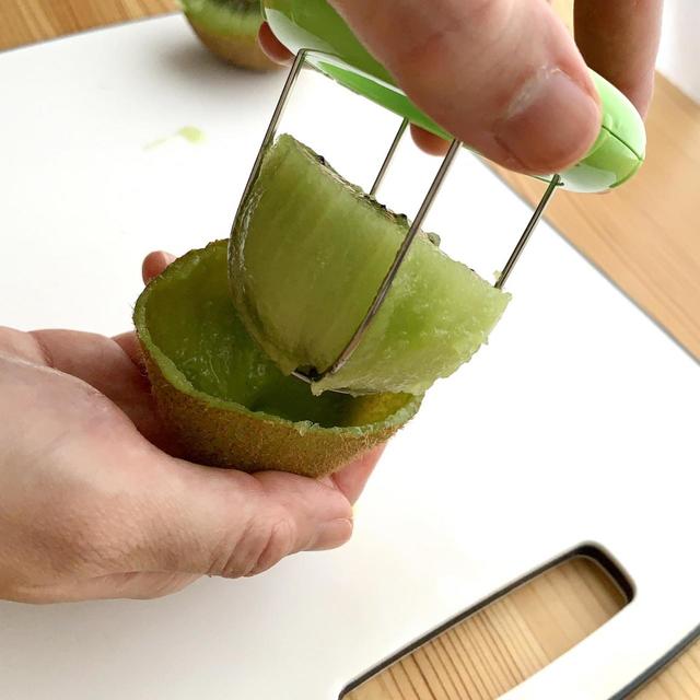 皮に沿わせるように回転することで、果肉をカットできます。キウイの皮を剥く手間を省いて綺麗にカットすることができました。