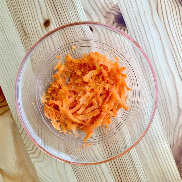 スライス後の人参は、想像よりも細かい仕上がりでした。個人的に、しりしりに使うときはもう少し太めが好きなので少し残念。