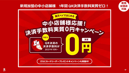楽天ペイメントの「中小店舗様応援!決済手数料実質0円キャンペーン」