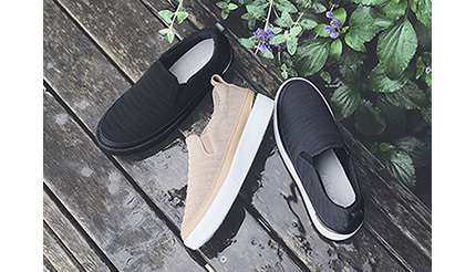「高機能防水スニーカー」は、「ALL DAY Walk」の履き心地はそのままに、天候に左右されないレインシューズの新定番アイテムとして開発され、靴内を快適な環境に保つ透湿防水素材「DiAPLEX(ディアプレックス)」を採用するとともに、靴底には軽量で水膜をすばやく排出し、雨天時にタイルなどで滑りにくくするハイドロワイパーソールを備えている。