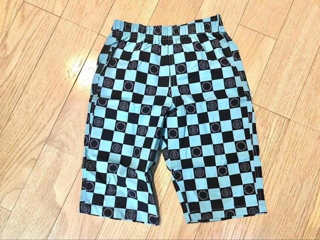一世を風靡した緑と黒の市松模様「炭治郎柄」をあしらった、インパクト抜群のステテコです。こちらも130サイズをチョイス!