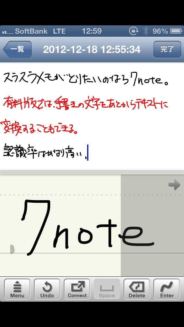 ●手書き文字をテキスト変換できる「7notes mini (J) for iPhone」