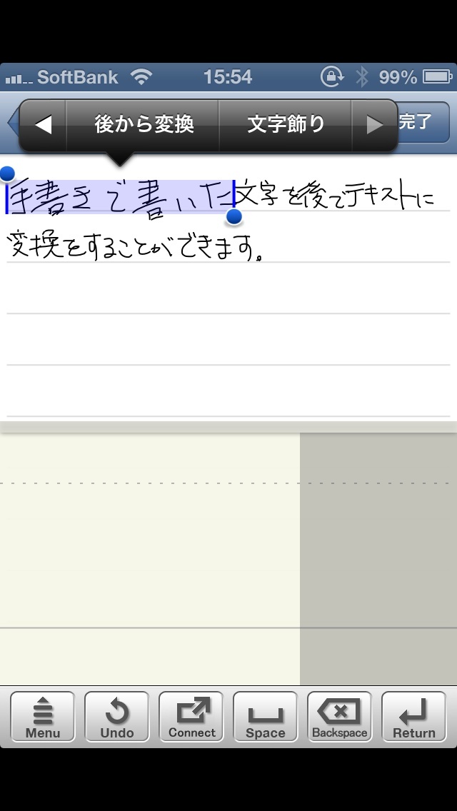 手書きメモの最大の弱点であるテキストへの変換という作業も、このアプリならば簡単に行えてしまうのです。
