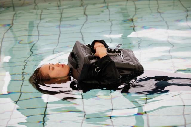防水性能 IPX5、浮力は救命胴衣以上の浮力を兼ね備えた「浮く防水リュック」です。