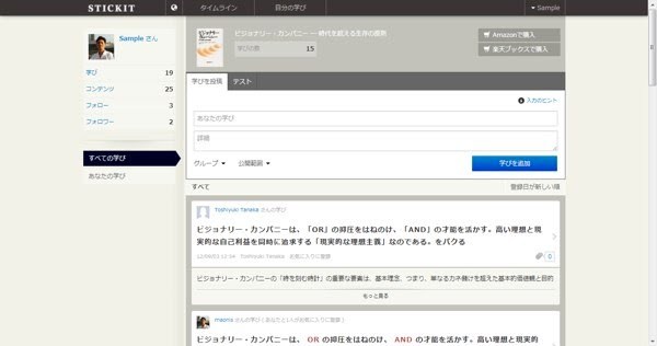 また、自分以外のSTICKITのユーザーの学びを見ることで、自分には縁のなかったジャンルに興味を持ったり、または自分に近い興味・関心を持ったユーザーの読書を参考にしたりと、知識の幅が広がることもあるだろう。使えば使うほど、学習意欲がわいてくるのが分かる。