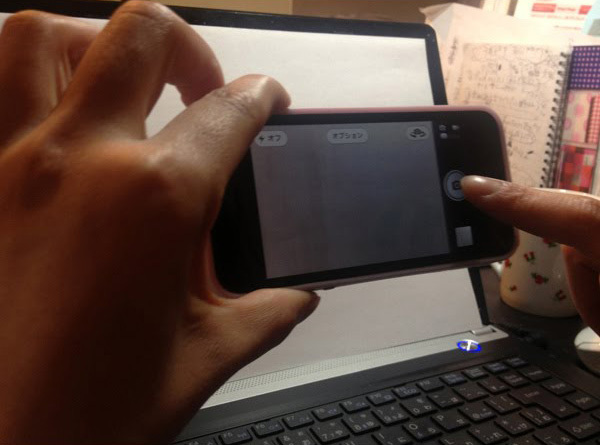 ブレ防止で一番大事なのは、iPhoneを固定すること。シャッターボタンに触れながらホームボタンの方向にスライドさせながら撮影すると、タップした時の反動でiPhoneが動くこともなく、ブレる心配もなく撮影することができます。iPhoneを横向きにするとなおやりやすいです。