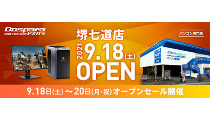 サードウェーブは9月18日に、PC専門店ドスパラの新店舗として、「ドスパラ堺七道店」を大阪府堺市にオープンする。