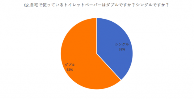 このトイレットペーパーについて「自宅で使っているトイレットペーパーはダブルですか?シングルですか?」という質問によると、なんと6割以上の方が、ダブル派ということに。