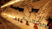 店内に入るとモノトーンで描かれた牛さんのイラスト。オシャレですね。