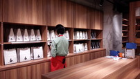 店員さんが俺の生食パンの試食をさせてくださいました。ふんわりして口どけもよくやっぱり美味しい! 棚には食パンに合わせるジャムやブレッドナイフが置いてあります。