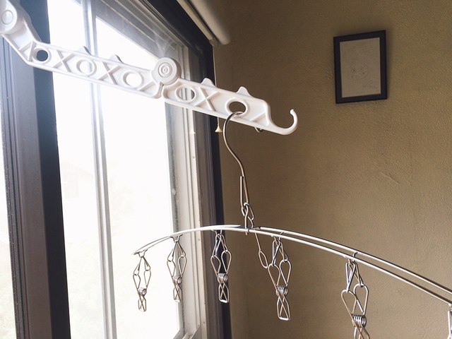 スタンドを立てなくても、窓枠に引っかけるだけで洗濯干しスペースができちゃうという画期的なアイテムです。