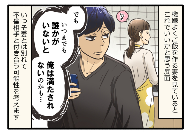もちろん不倫は絶対に避けるべきですが、きっかけが妻にないとはいえず、役割にこだわるのではなく夫の気持ちを受け入れる余裕も妻には必要です。