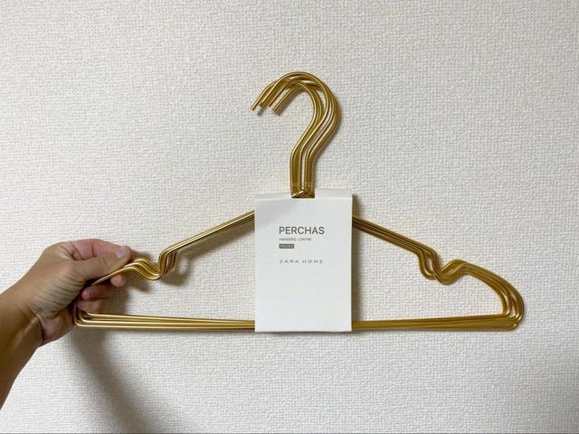 ZARAのメタルハンガーは5本セットです。カラーはブラック、シルバー、そしてゴールドの3種類。今回はゴールドを購入してみました。