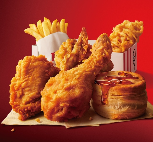 秘伝の11ハーブ&スパイスで味付けをした「オリジナルチキン」と、サクサク食感と&にんにくと醤油の風味が、食欲をそそる骨なし「カーネルクリスピー」、ホクホクした食感の「ポテト」に加えて、数量限定の「発酵バター入りビスケット」がセットに仲間入りしました。