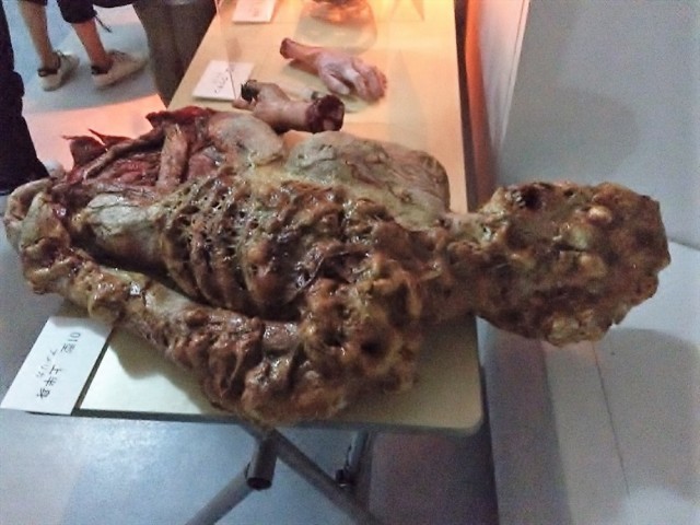 上半身がそのまま展示されているブラジルのゾンビ。背景の夜景効果か、あまり怖くは感じなかった。