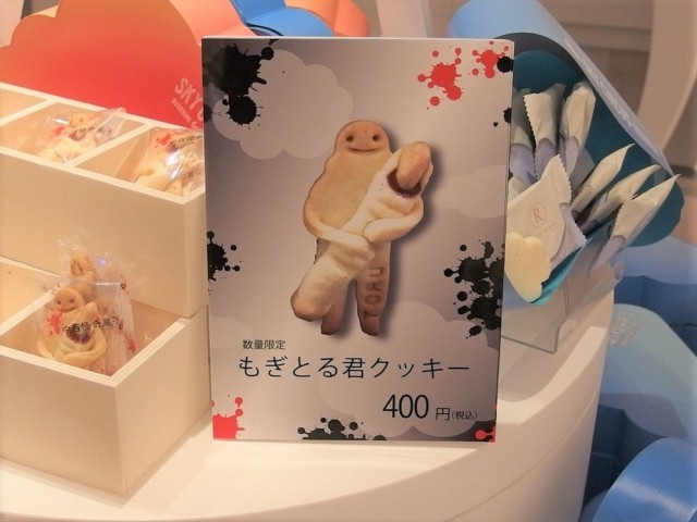 ショップには、今回のイベントならではのアイテムが販売されていた。「フィンガーマン」、「ゾンビハンド」、「ボクシングペンモンスター」が購入できる。人間からもぎとった指を抱える「もぎとる君クッキー」(数量限定) はホラー菓子で有名な中西怪奇菓子工房さんの商品だ。