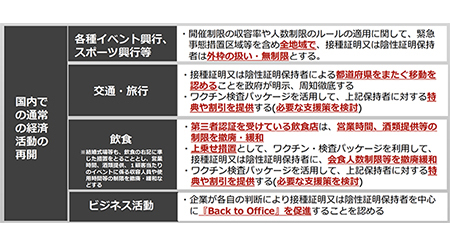 現状の各種制限の撤廃緩和を求め、ワクチン・検査パッケージに関する具体的要望をまとめた(9月13日公表)