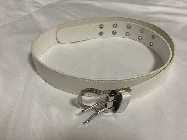 今回はスラックスのグレーに合わせてシロを選びました。ベルトはズボンやトップスと色を合わせ、統一感を出すのもいいですし、敢えてカラフルな色を選び、ワンポイントにしてもかわいいです!