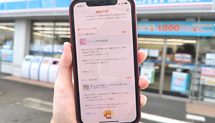 この方法では二つのキャンペーンを併用することでお得の最大化を狙う。まずは「毎日おトクなau PAY!ローソンでのお買い物でPontaポイント3%還元!」。au PAYがローソンで常時開催しているキャンペーンで、対象店舗で決済すると購入金額の3%を還元する。還元上限は1000ポイント/月。月が変わると上限がリセットされるので、長く愛用している人も多いだろう。