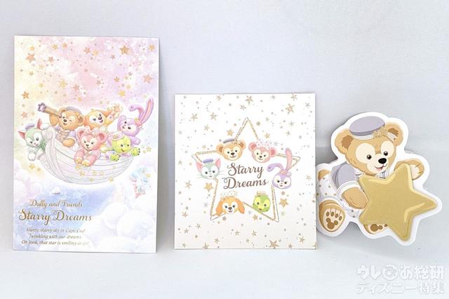 右下に、大きな金色のお星さまを抱えたダッフィー。