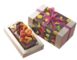 イチジクとクルミが入ったブラウニーに、スイートチョコレート、ストロベリーやアプリコットなどのドライフルーツをトッピング