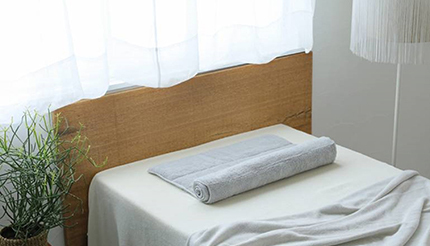 こうしたことから考えると、良い睡眠では必然的に発汗が伴うわけだが、その分寝具にも水分が吸収される。これらが早く揮発したほうが、効率よく温度が下がるわけで、そうした意味でも今治タオルという素材はすぐれている。「水に触れてから5秒以内に沈み始めなければならない」を基準にしている今治タオル(品質基準:https://itia.or.jp/brand/quality.html)だが、吸水性はもとより速乾性が高いことでも知られている。こうしたことから考えても、タオルを枕にするという意義は大いにあるだろう。