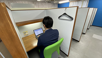 さらに、店内には2台のテレフォンブースを備えており、完全個室でビデオ会議や語学の音読練習などを行うことができる。
