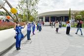 1周年を迎えられたことへの感謝の気持ちを伝えるため、キャストたちが笑顔でゲストをお迎えしました。