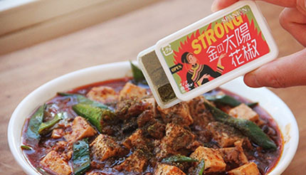 新商品は、家庭でもよく登場する「麻婆豆腐」に着目。味の決め手となる「麻(マー、花椒の痺れる辛さ)」と「辣(ラー、唐辛子のヒリヒリする辛さ)」それぞれの原料を厳選した産地から取り寄せて、ふりかけやすく持ち運びもできるパッケージに加工した。