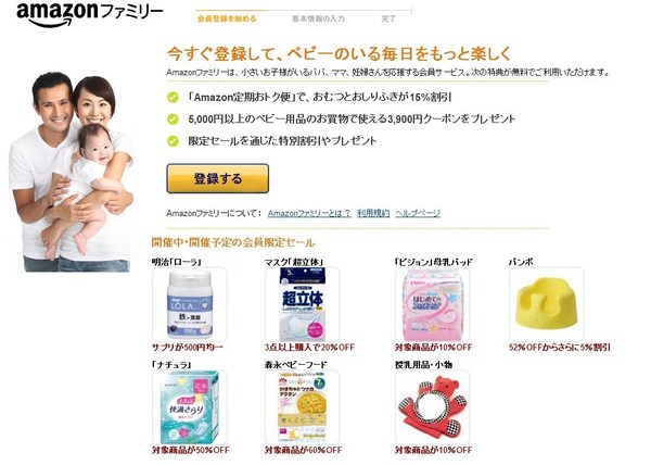 消費頻度が高く、かさばるにもかかわらず、小さな赤ちゃんを連れての買い物は難しいのが現実なので、定期的に安価に赤ちゃん用品を届けてくれるのは嬉しいサービスです。この「Amazonファミリー」の具体的なメリットは以下のとおり。