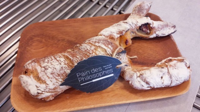 赤ワインで仕込んだ天然酵母のパン。クラストの香ばしさ、クラムのもっちり感。レーズンが大粒でとてもジューシー(ワインに漬けてあるかな?)、イチジクはソフト食感。ワインに例えるとしっかりしたフルボディで、下戸なら寄ってしまいそうなほど魅惑的。白ワインで仕込んだ“ヴィニュロン・ブラン”を次は買ってみます。