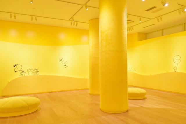 ウッドストックを思わせるイエローカラーに全面彩られたスペースでは、フワフワの椅子に腰掛けて、ピーナッツ全集などの本を読んだりオリジナルアニメーション「屋根の上のスヌーピー」を観たりして過ごせます。