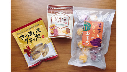 今回実食した3品はいずれもやさしい味わいが印象的だった。小腹が空いたときにちょっと新しい商品を試したいときは「紫芋とかぼちゃのおもち」、糖質や健康を気にしながらおいしいおやつを食べたいときは「おからクッキー」、しっかりと芋の味を楽しみたいなら「さつまいもグラッセ」と気分や目的によってそれぞれの魅力を味わってほしい。(エフェクト・霜越緑)