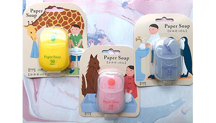 「ペーパーソープ」(308円)。かわいらしい動物のパッケージが特徴
