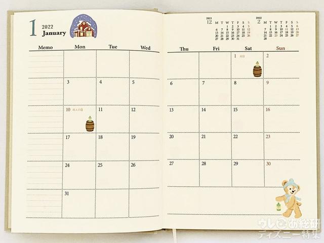 ダッフィーは毎年変わっていませんが、休日の色が表紙の色になっています。