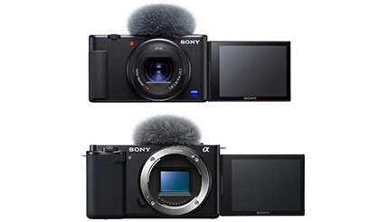 カメラ市場をけん引するソニーのVlogger向けカメラ。ZV-1(上)とZV-E10。風防の「モフモフ」が印象的だ