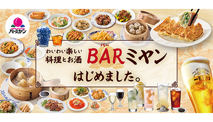 すかいらーくレストランツは10月7日から、同社が運営する「バーミヤン」全店(一部を除く)において、「BAR(バー)ミヤン」と題してアルコールメニューを拡充し、アルコールのお供や、おかずにもなるメニューを新たにラインナップする。