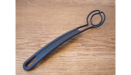 「オメガヴィスペン」はネットショップで1300円前後で購入した。全長は約25cm、重さは約25gと軽量。樹脂製なので、フッ素加工やホーローコーティングも傷つけにくい