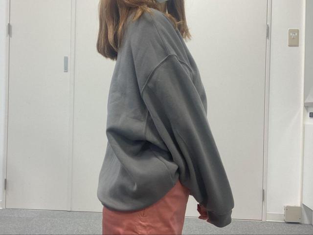 オーバーサイズなので、身長170cmの私はMサイズを選びました。大きめに作られているのに、もたついて見えない適度な生地の厚みは、すごく考えて作られているなと感じました!