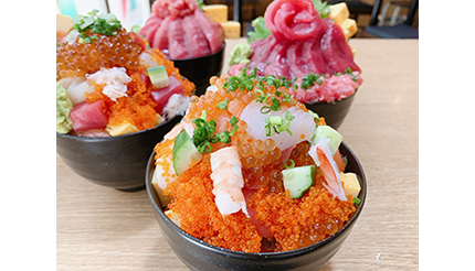 柔らかくてジューシー、食べ応えのある大きな肉をシェアして食べることができる。また、あての細巻きにネギトロをたっぷり乗せた「びっくりネギトロ」(680円)は見た目にも楽しい一品だ。