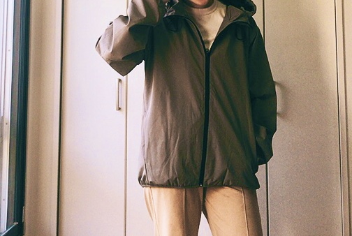 撥水性があるのでちょっとした雨の日も重宝。メンズものですが、女性が着てもカジュアルにかっこよく着こなせます。