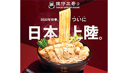 トリドールホールディングスは2022年初春、傘下グループ企業の「Tam Jai International Co. Limited」を通じ、香港で人気ブランドと評されミシュランに3年連続で掲載された「譚仔三哥米線(タムジャイサムゴー ミーシェン)」を日本に初出店する。上陸を機に日本でも積極的に出店する。