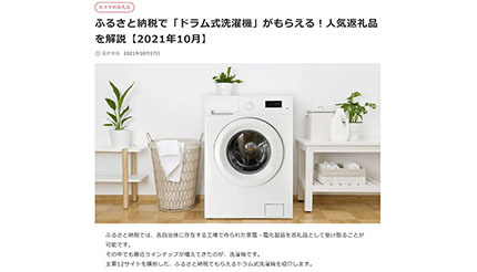 ふるさと納税ガイド、返礼品としてもらえるドラム式洗濯機を調査