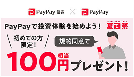 PayPay証券は10月18日に開始した「超PayPay祭」に合わせて、「ボーナス運用」を初めて利用した人にもれなく「スタンダードコース」の100円分相当の運用中残高(運用ポイント)をプレゼントする「超PayPay祭 投資体験してみようキャンペーン」を開催する。