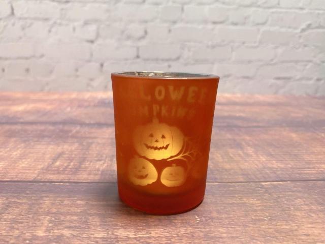 すりガラスにカボチャの絵柄が大人かわいいキャンドルカップ。