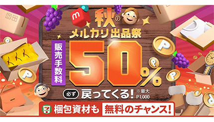 メルカリでは11月8日まで、出品して売れた商品の販売手数料の50%還元や梱包資材無料メルペイクーポンを配布するなどお得なキャンペーン「秋のメルカリ出品祭」を開催している。