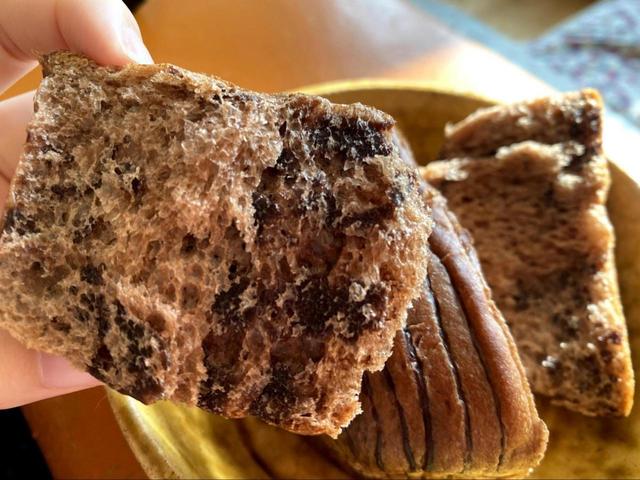 全体的には甘さ控えめですが、たまにチョコレートが織り込まれている部分の甘さが引き立って良いバランスです。