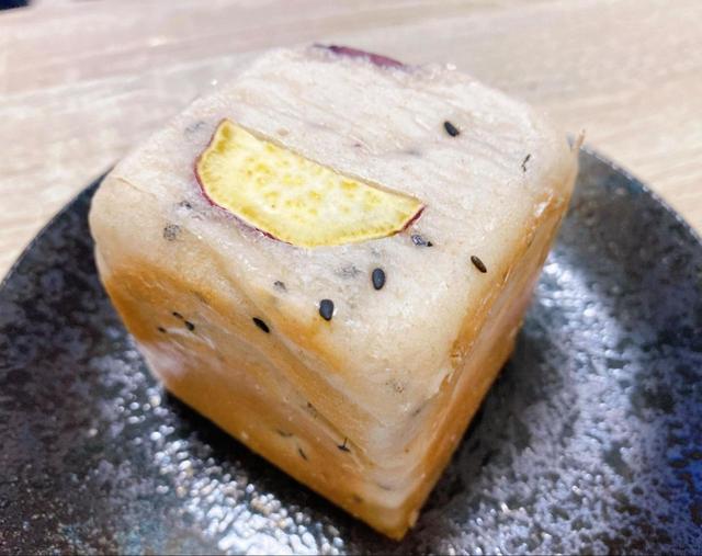 可愛らしい、コロンとした形のキューブ型の食パンに、たっぷりとさつまいもが入って、素材本来の自然な甘みが特徴です。