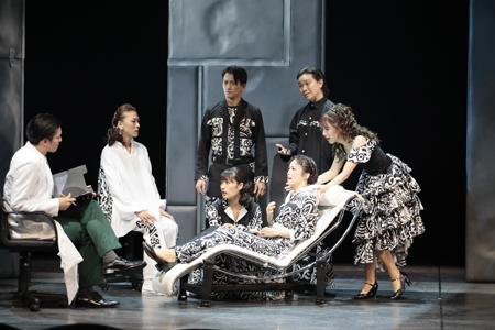 ロジャーの指導のもと、分裂した人格を統合し、“本当の自分”になろうとするサリー。ステージでは、サリーの人格が次々と入れ替わるさまを、サリー役の彩吹と別人格役のキャストたちがセリフや動きをリンクさせることで見事に表現。シンプルな舞台セットで、大きな舞台転換もないだけに、より高い演技力も必要となるが、彩吹は声のトーンや表情で9つもの人格を演じ分け、観客を演技で魅了した。また公演オリジナルテーマ曲が、漂うサリーの心や苦悩、葛藤を表現し、物語に深みを与える。印象的な衣裳にもぜひ注目してほしい。