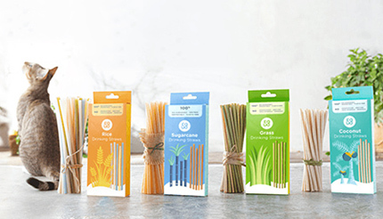 EQUOストローのラインアップは、「お米」「草」「ココナッツ」「さとうきび」の4種類で、好みや楽しみ方で選べる。プラスチック&化学物質フリーで、無毒、無毒、生分解性なので庭や観葉植物などの肥料として再利用が可能になっている。